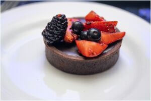 Dessert: Vegan chocolate tartlet with fresh fruit
